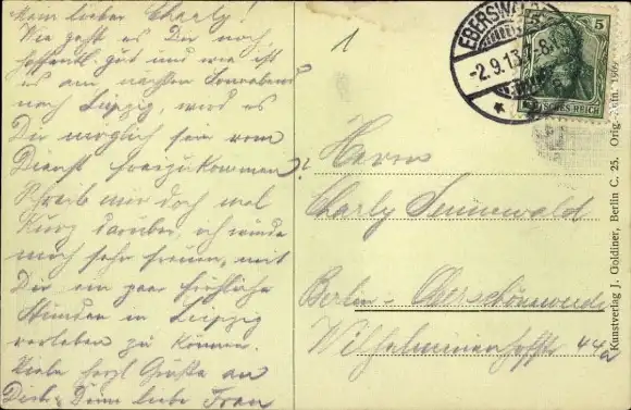 Zustand siehe Scan, gelaufen, 1913 - ca 14 cm X 9 cm