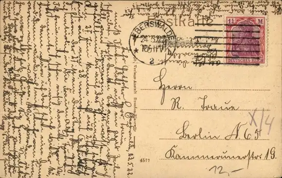 Zustand, siehe Scan, gelaufen, 1922 - ca 14 cm X 9 cm