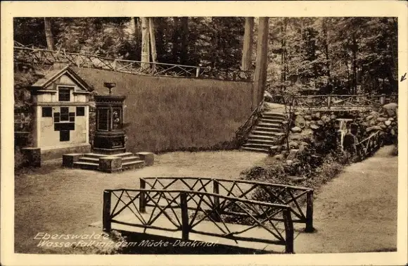 Ak Eberswalde in der Mark, Wasserfall, Mücke-Denkmal