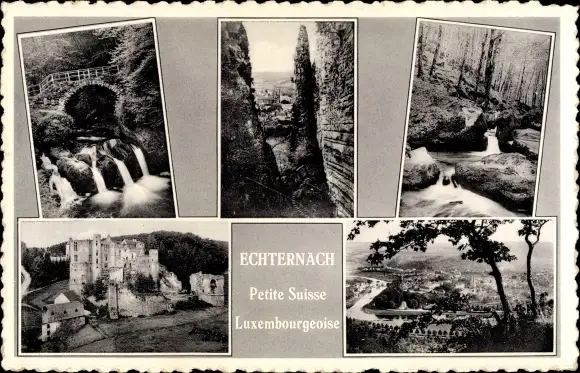 Ak Echternach Luxemburg, Kleine Luxemburger Schweiz, Wasserfall, Panorama, Felsformation