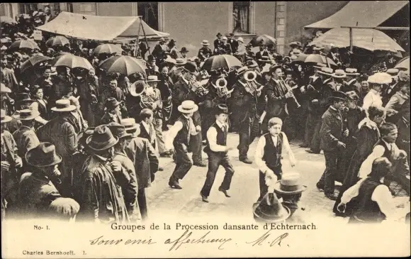 Ak Echternach Luxemburg, Procession dansante, Danseurs