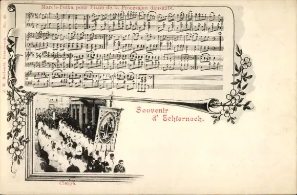 Ak Echternach Luxemburg, Procession dansante, March-Polka, Prozession