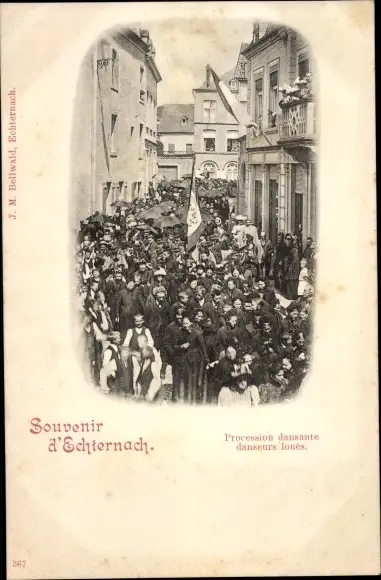 Ak Echternach Luxemburg, Procession dansante danseurs loués