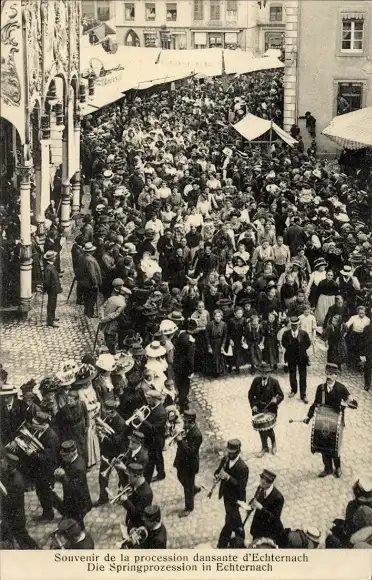 Ak Echternach Luxemburg, Prozessionsszene, Menschenmenge, Springprozession