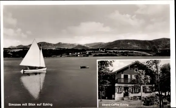 Ak Ecking Riedering in Oberbayern, Simsee, Segelboot, Ort, Strandcafé