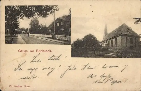 Ak Eddelak in Dithmarschen, Kirche, Straßenpartie
