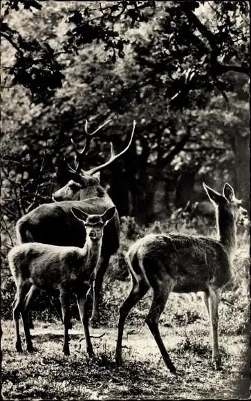 Ak Edelhirsch mit Hirschkuh und Kalb