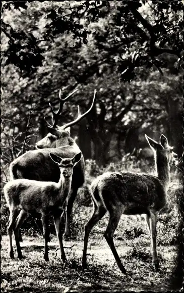Ak Edelhirsch mit Hirschkuh und Kalb