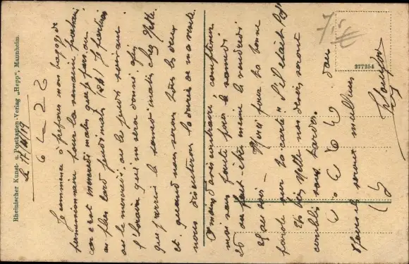 ungelaufen, datiert 1919, Rückseite beschrieben, Eckknick rechts oben, sonst guter Zustand
