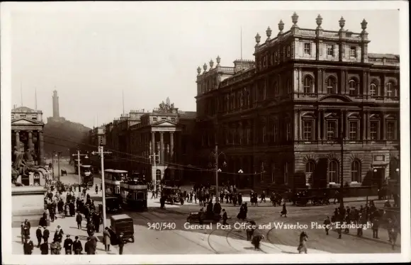 Ak Edinburgh Schottland, General Post Office and Waterloo Place