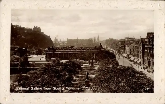 Ak Edinburgh Schottland, National Gallery, Scott's Monument