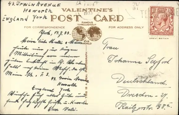 Zustand, siehe Scan, gelaufen, 1933 - ca 14 cm X 9 cm