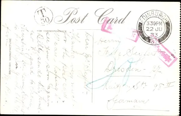 Zustand, siehe Scan, gelaufen, 1933 - ca 14 cm X 9 cm