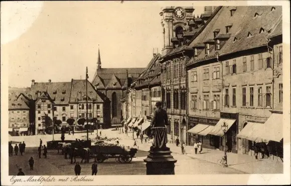 Ak Eger Reg. Karlsbad, Marktplatz, Rathaus