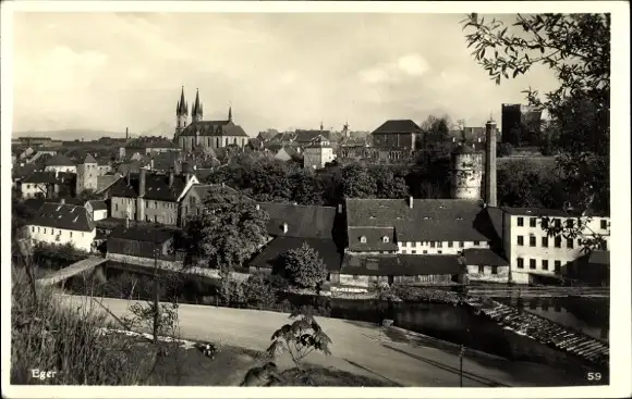 Ak Eger Region Karlsbad, Gesamtansicht der Stadt, Kirche
