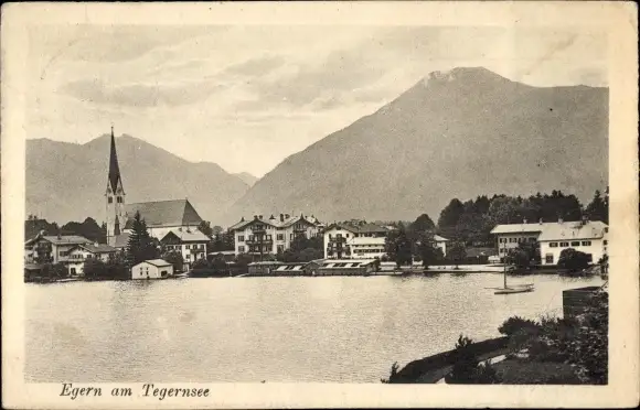 Ak Egern am Tegernsee Oberbayern, Kirche, Boot