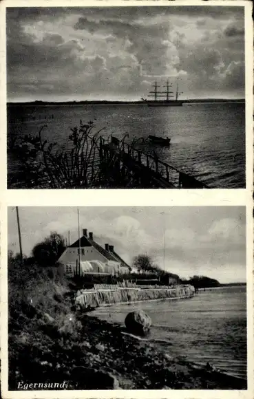 Ak Egernsund Ekensund Dänemark, Segelschiff, Uferansicht