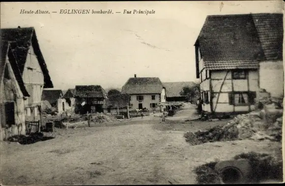 Ak Eglingen Elsass Haut Rhin, Rue Principale, Kriegszerstörungen, I. WK