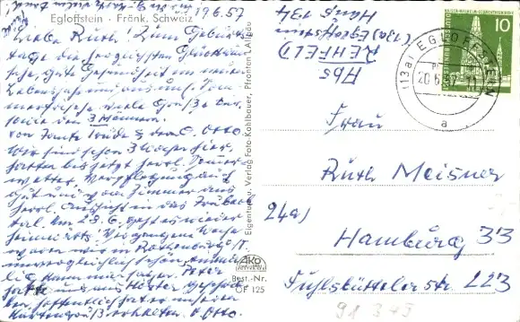Zustand, siehe Scan, gelaufen, 1957 - ca 14 cm X 9 cm