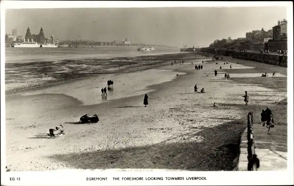 Ak Egremont North West England, The Foreshore Looking Towards Liverpool
