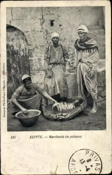 Ak Egypte, Marchands de poissons, ägyptische Händler