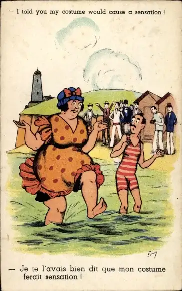 Ak Ehepaar am Meer, Übergewichtige Frau, Bademode