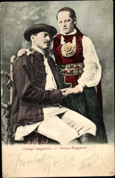 Ak Ehepaar in ungarischen Trachten, Csango-Magyaren