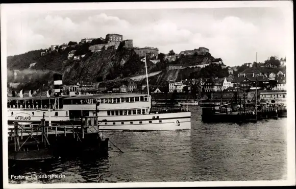 Ak Ehrenbreitstein Koblenz am Rhein, Dampfer Vaterland, Uferpartie