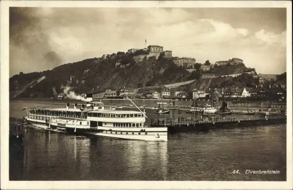 Ak Ehrenbreitstein Koblenz am Rhein, Dampfschiff passiert Schiffbrücke