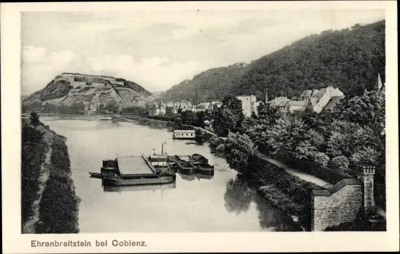 Ak Ehrenbreitstein Koblenz am Rhein, Ortschaft, Fluss, Boote