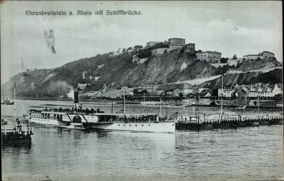 Ak Ehrenbreitstein Koblenz am Rhein, Schiffbrücke, Rheindampfer