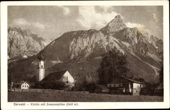 Ak Ehrwald in Tirol, Kirche mit Sonnenspitze