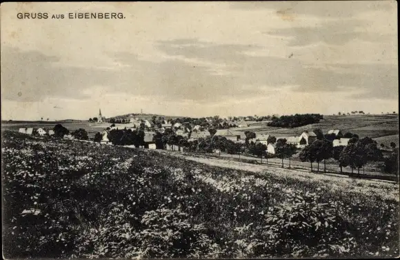 Ak Eibenberg Burkhardtsdorf im Erzgebirge Sachsen, Totalansicht des Ortes