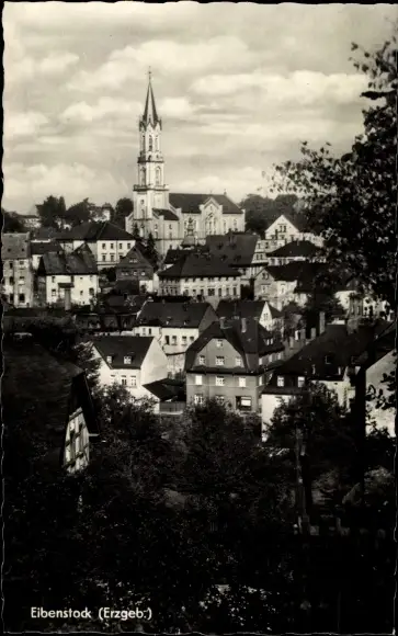 Ak Eibenstock im Erzgebirge Sachsen, Blick über die Dächer auf Kirche