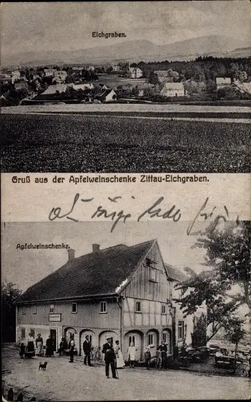 Ak Eichgraben Zittau in Sachsen, Apfelweinschenke, Blick auf den Ort