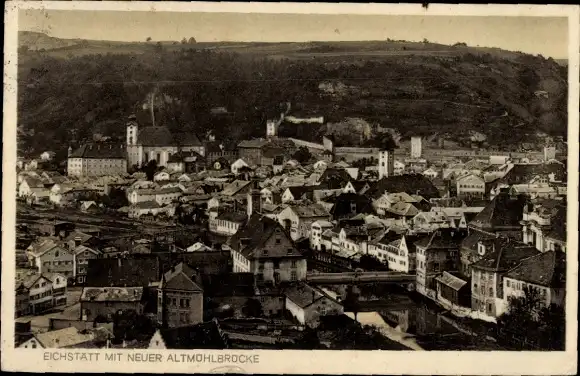 Ak Eichstätt in Oberbayern, Totalansicht, Neue Altmühlbrücke