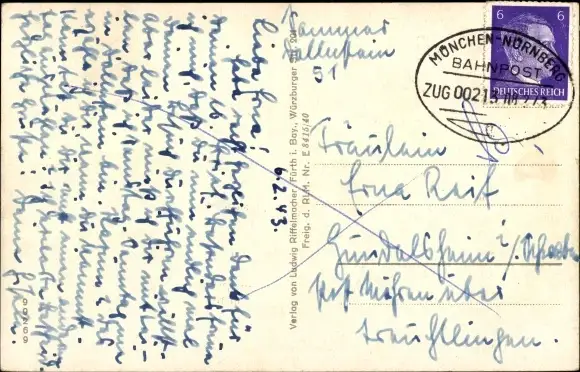 Zustand, siehe Scan, gelaufen, 1943 - ca 14 cm X 9 cm