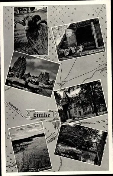 Ak Eimke in der Lüneburger Heide, Kirche, Mühlenteich, Thonhopsberg, Khienmoor