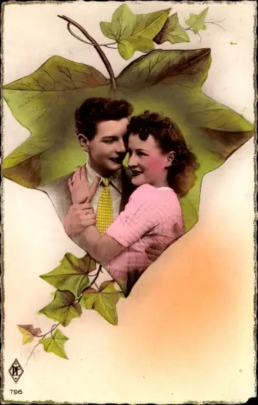 Ak Ein junges Paar in einer Efeuranke, Blatt