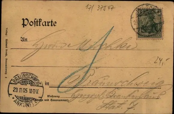 Zustand, siehe Scan, gelaufen, 1905 - ca 14 cm X 9 cm