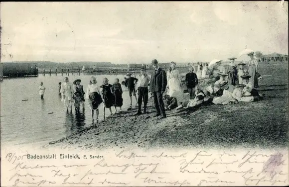 Ak Einfeld Neumünster in Holstein, Badeanstalt, Uferpartie