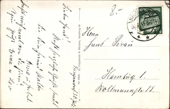 Zustand, siehe Scan, gelaufen, 1933 - ca 14 cm X 9 cm