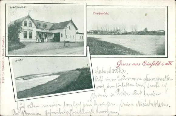 Ak Einfeld Neumünster in Holstein, Gasthof, Badeanstalt, Dorfpartie