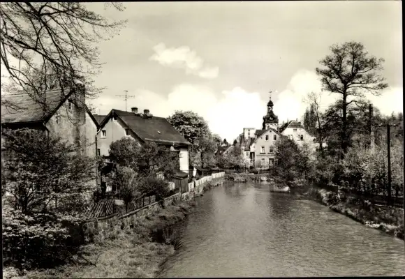 Ak Einsiedel Karl Marx Stadt Chemnitz in Sachsen, Flusspartie, Kirchturm, Häuser