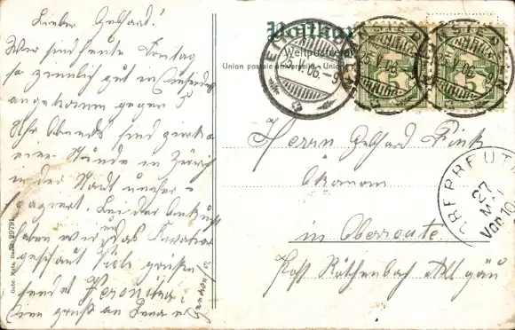 Zustand, siehe Scan, gelaufen, 1906 - ca 14 cm X 9 cm