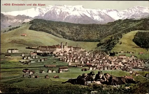 Ak Einsiedeln Kanton Schwyz Schweiz, Panorama, Alpen, Kloster