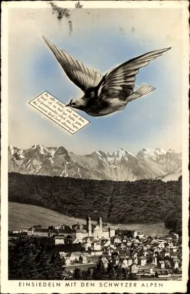 Ak Einsiedeln Kanton Schwyz Schweiz, Panorama, Taube mit Brief