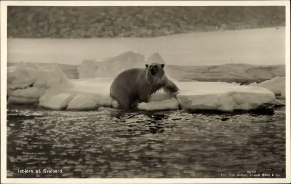 Ak Eisbär im Wasser, Eisscholle, Winterlandschaft