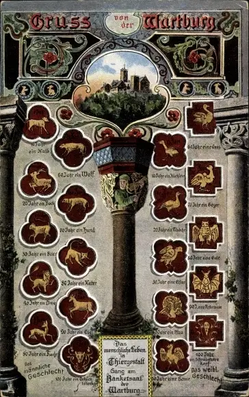 Ak Eisenach, Die Wartburg, Menschenleben in Tiergestalt