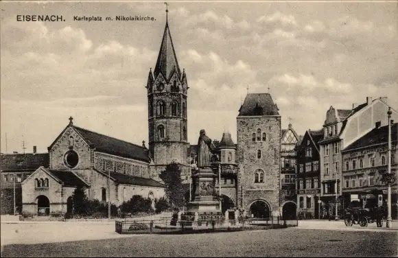 Ak Eisenach Thüringen, Karlsplatz mit Nikolaikirche
